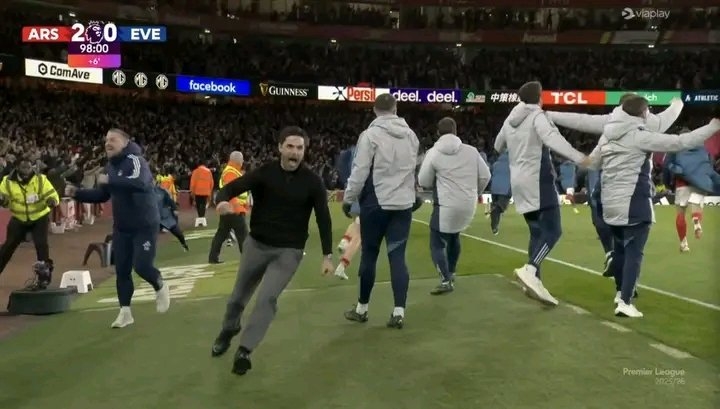 真正的高潮在伤停补时第97分钟到来。埃弗顿角球进攻,门将皮克福德弃门参与进攻未果,阿森纳抓住反击机会。道曼后场拿球,长驱直入,过掉两名防守球员,冷静推射空门得手。2-0,比赛就此杀死。