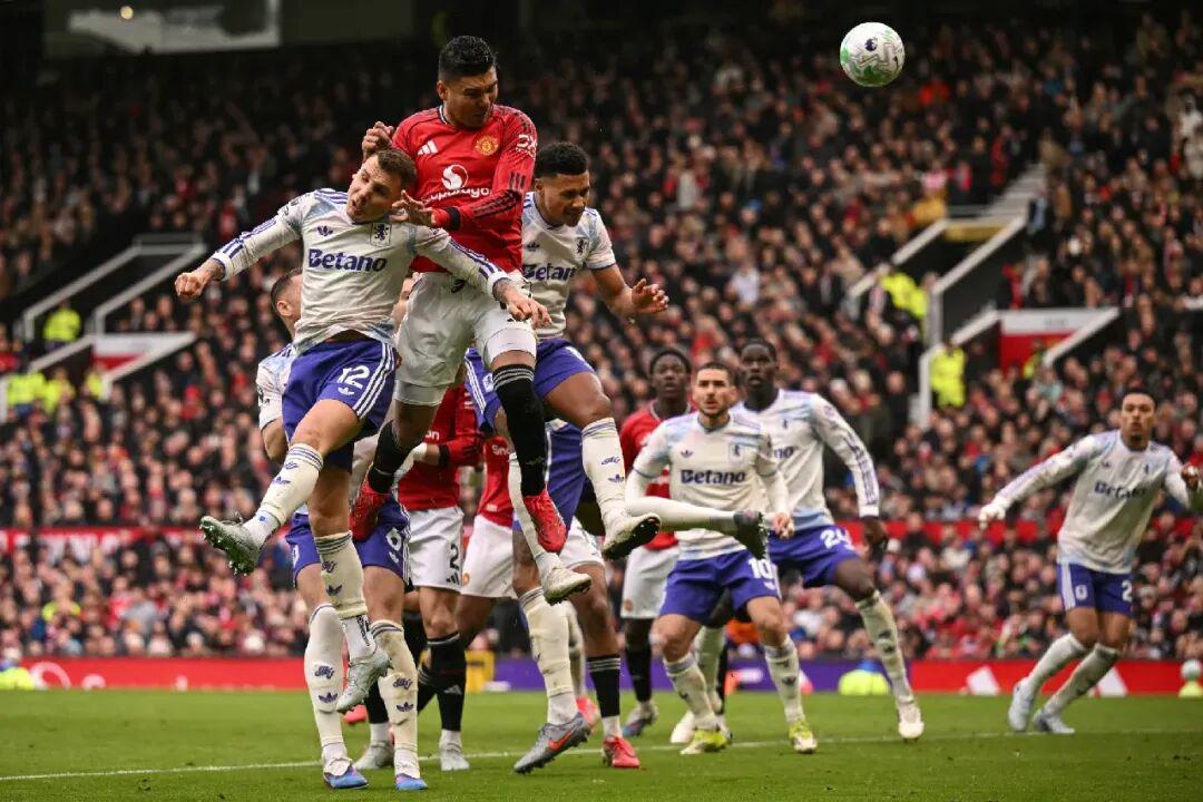 先拔头筹的是卡塞米罗。他故伎重演,蹿到前点接应B费的内弯角球,狮子摇头,皮球中后柱挂网。这是卡塞米罗本赛季第6次为曼联头球得分,联盟中属他最多。他并没有借助全队“挤地铁”攻击角球,而是凭借嗅觉和意识,及时出现在队友传中球的落点附近。进球后,卡塞米罗的庆祝动作明显在回应球迷“再打一年”的呼吁。